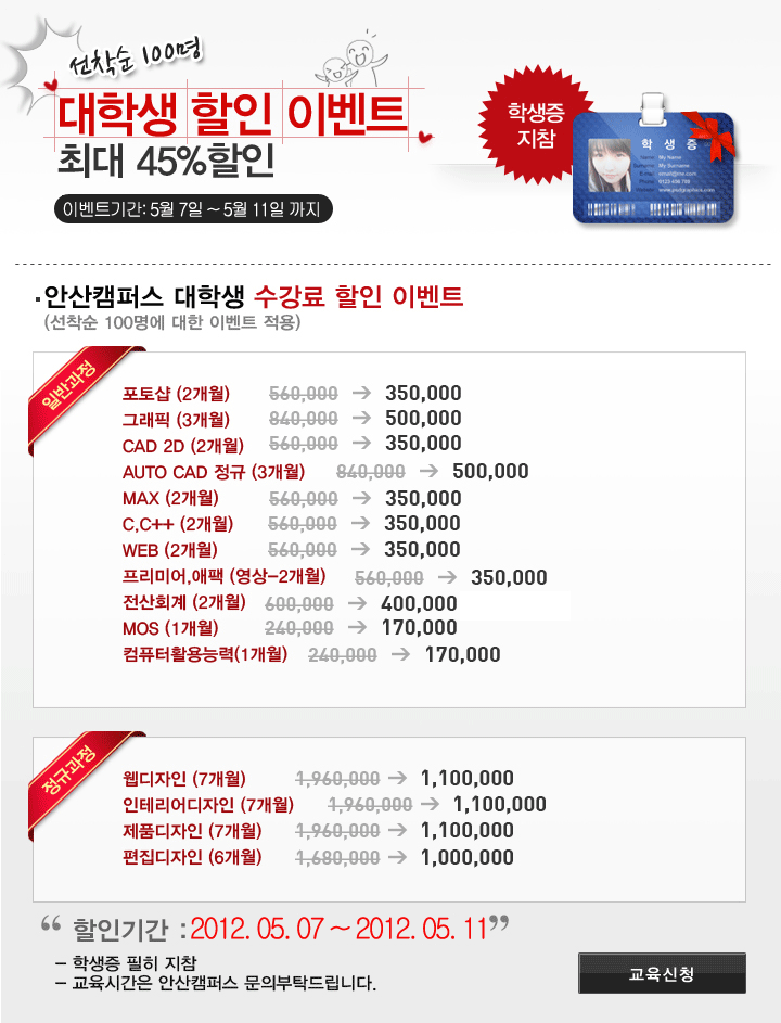 [이벤트] 대학생 최대 45% 할인 이벤트 (선착순 100명)