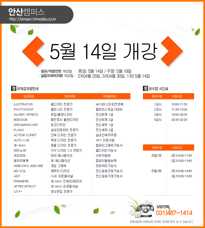 [정규개강]안산캠퍼스 2012년5월 정규개강안내