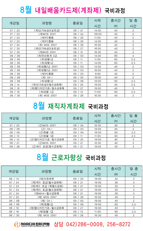 정규개강]2012년 8월 개강일정입니다.(대전캠퍼스)