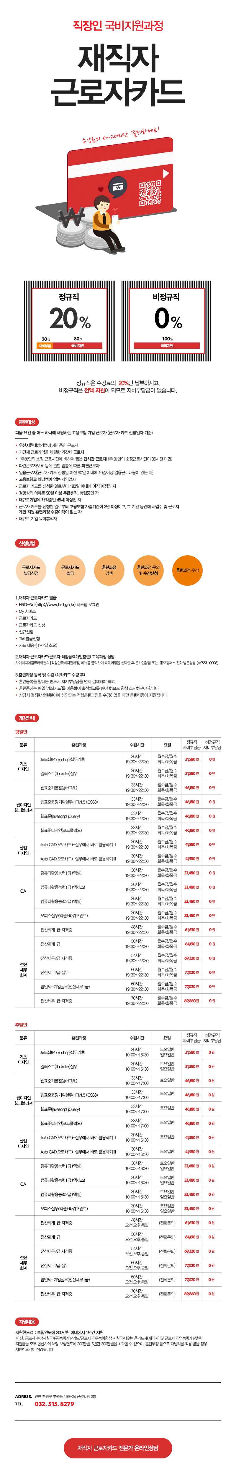 [인천점]재직자 근로자카드 수강료 안내