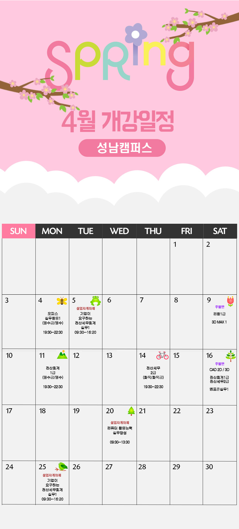 [성남캠퍼스] 4월 개강일정