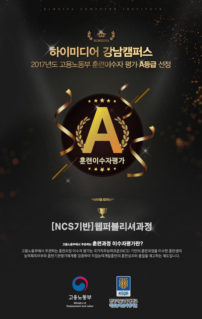 [강남캠퍼스] 2017년도 고용노동부 훈련이수자 평가 A등급 선정