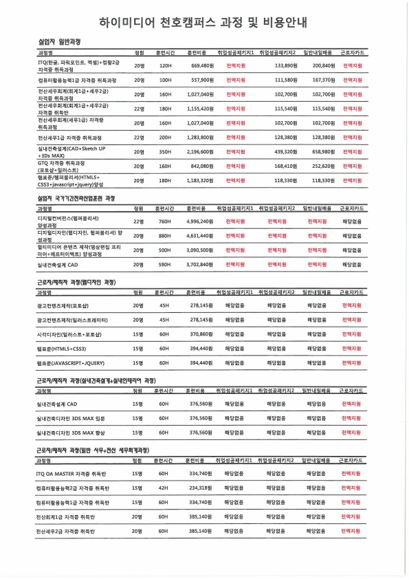 천호 캠퍼스 [2018년] 하이미디어아카데미 수강료 안내 Post. 2018.01.10 [2018년] 하이미디어아카데미 수강료 안내 상담문의 : 02-479-0009 로 연락을 부탁드립니다. ^^